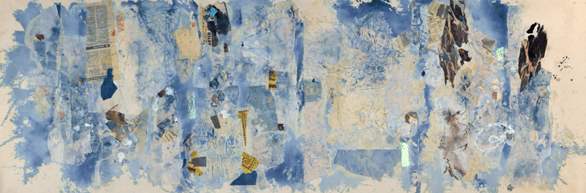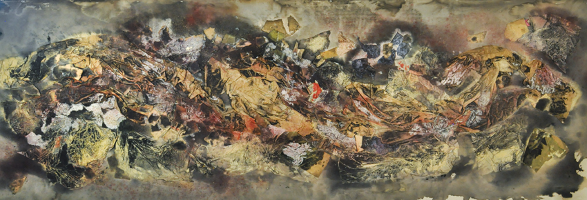 I unwrapped the roll of paintings labelled Lilith series part II and found the above works. I created them circa 1995-97. Two of them each measure 31″ by 96″ and the other is 31″ x 108″. All are acrylic and collage on canvas.