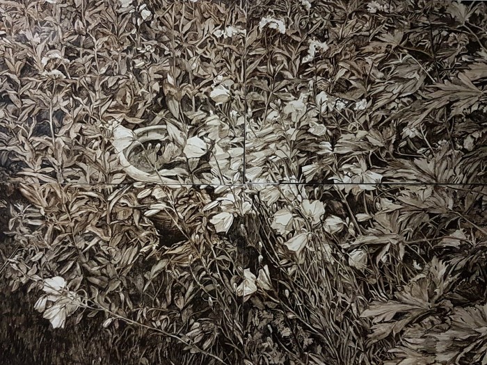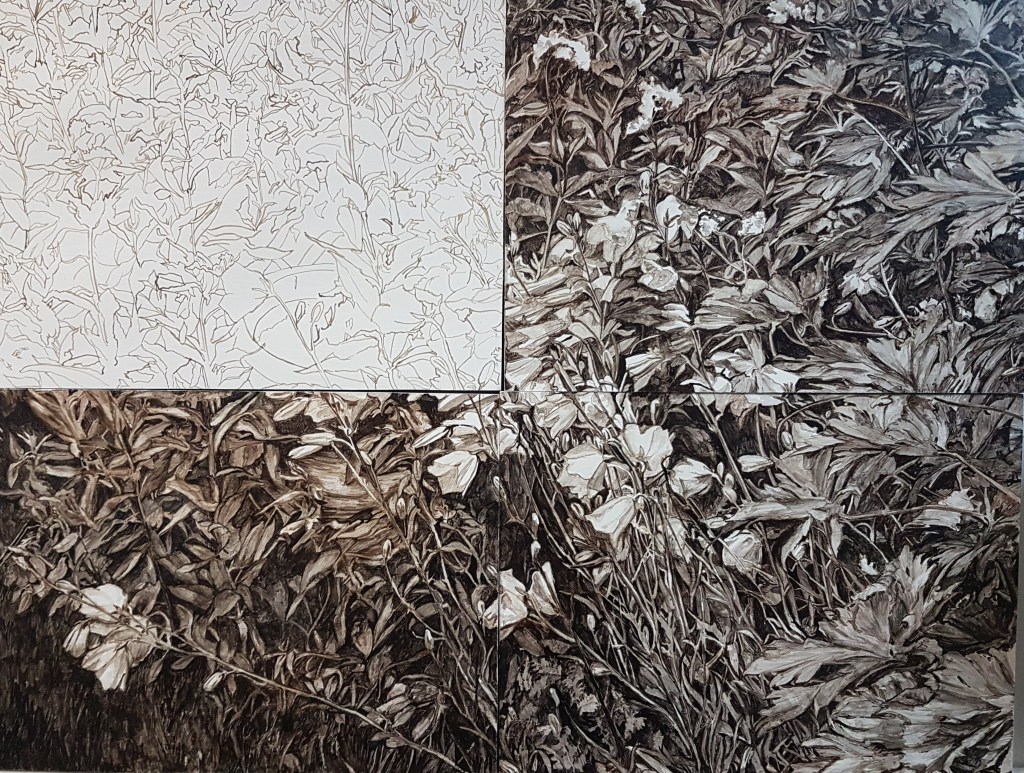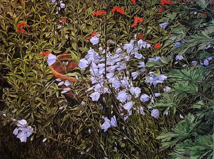 The thing is that given the fine detail of this painting, I found it difficult to add thick paint to such small areas in a concise way. In the end, I used oil paint and a thinning Alkyd medium to glaze the colours on.